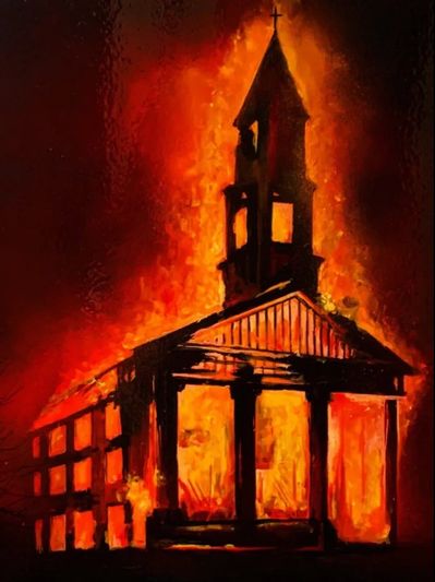 With the building engulfed, the players leapt into the wagon driven by Miguel and José, fleeing south under the hellish glow of the burning church.