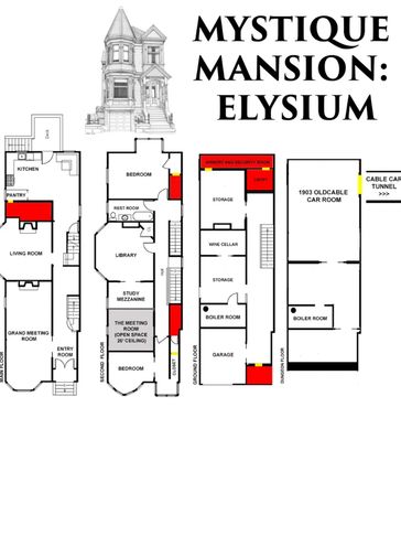 The floor plan of the Mystique Mansion. One of the more secure and secretive places in San Fransisco.