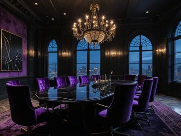 On the top floor of the Fairmont lies a room for the Primogen meetings. Draped in beautiful dark purple velvets and black obsidian marble, the room is impenetrable and will no doubt host meetings that will change both mortal and kindred affairs.